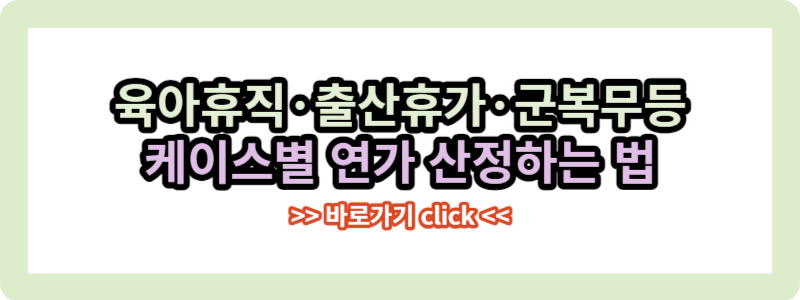 육아휴직, 병가, 군복무, 연도 중간 입사, 병가 등 케이스별 연가산정 방법이 궁금하신 분들은 아래 바로가기 링크를 통해 확인하시기 바랍니다.