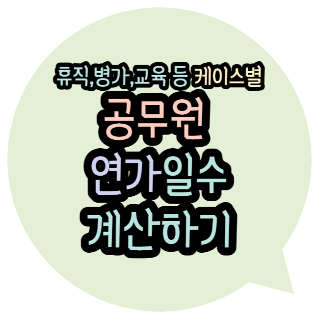 출산휴가, 육아휴직, 군복무, 출산휴가, 수습, 병가, 교육, 연도 중간 임용 등 여러가지 케이스별 연가 일수 산정 방법에 대해 정리해 보았으니 본인 상황에 맞게 적용해보시기 바랍니다.