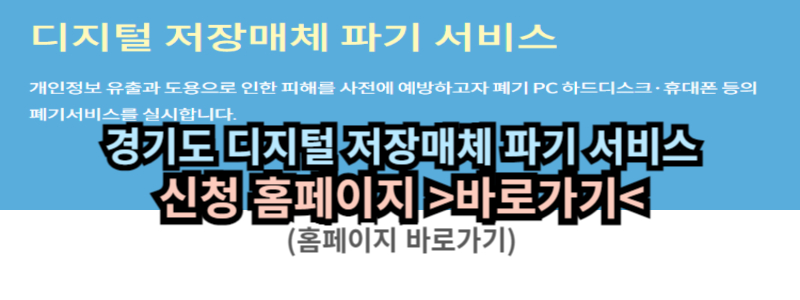 경기도의 디지털 저장매체 파기 서비스를 신청하여 이용하고 싶은 분들은 아래 바로가기 링크를 통해서 접수하시기 바랍니다.
