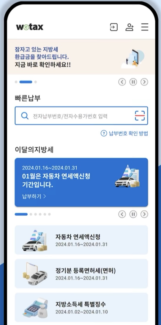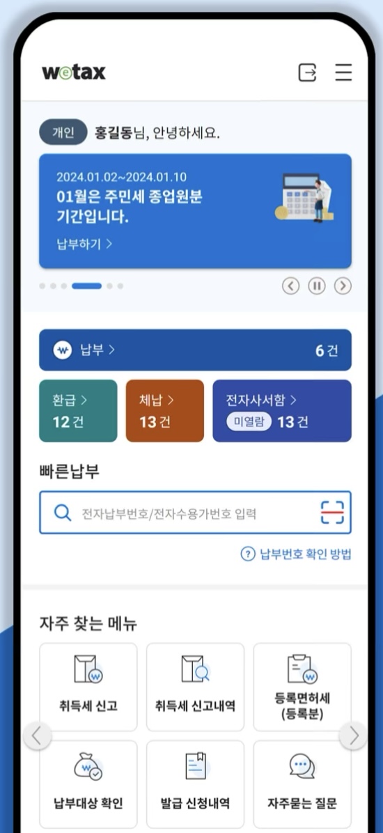 > 지방세 미납 내역 확인하기(위택스 홈페이지 바로가기)