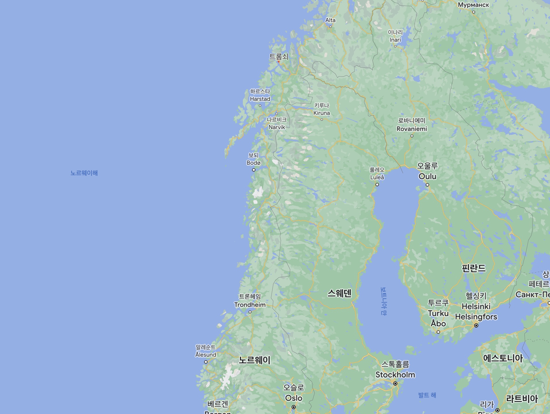노르웨이는 스칸디나비아반도를 대표하는 국가로 북부 지역은 북유럽의 가장 끝단에 자리 잡고 있는 곳입니다. 노르웨이 트롬쇠는 오로라 연구의 중심지라고 할 정도로 오로라 관측이 잘 되는 지역 중에 하나입니다.