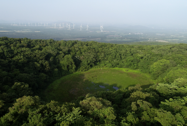 트레킹의 재미가 가득한 오름입니다. 람사르 습지로 지정된 이곳은 청정한 자연환경을 자랑합니다. 넓은 초원을 거니는 소들과 풍차 여러 오름을 감상할 수 있는 전망대까지, 오르는 동안 다양한 풍경이 펼쳐지는 곳입니다.