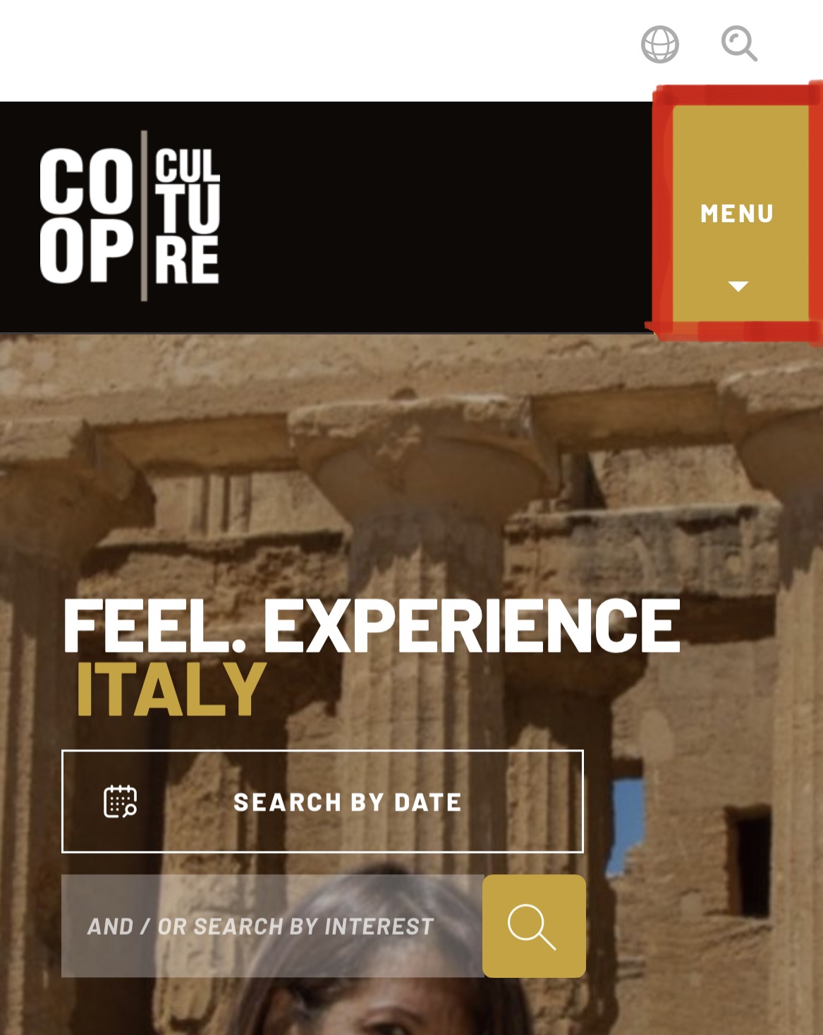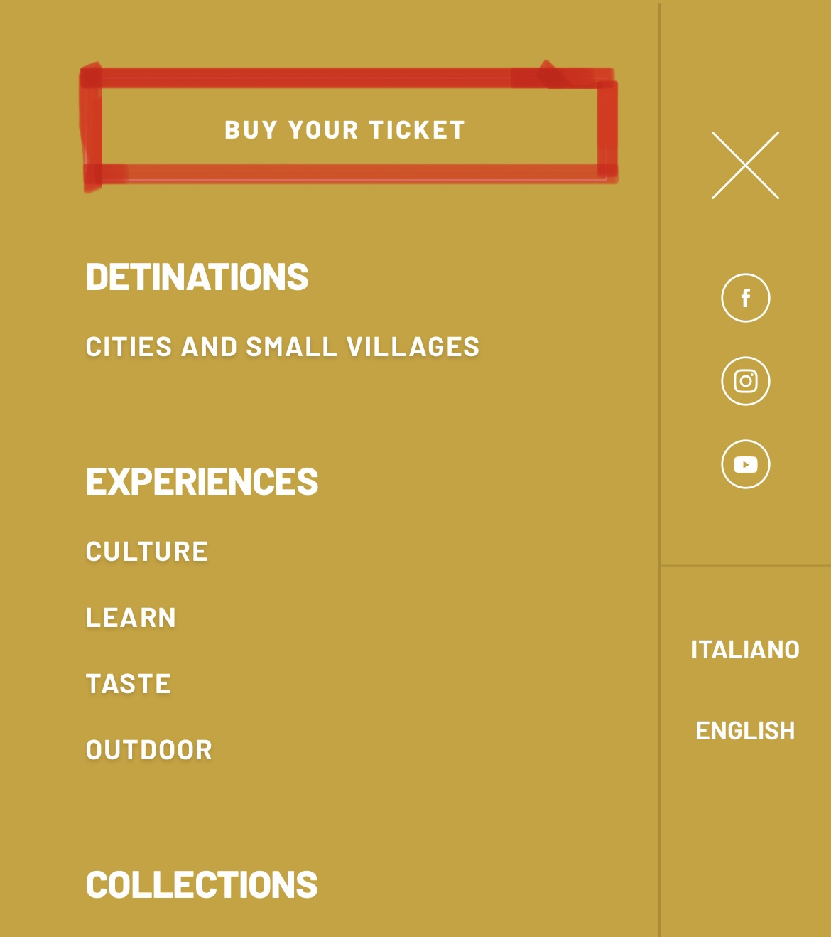 1) 위 사이트로 들어가면 아래 와같은 창이 뜬다. 만약 영문이 아닌 이탈리아 어로 뜬다면 맨 위 지구본 표시를 눌러서 english로 바꿔주면 된다. 아래 입장권을 휴대폰으로 사이트에서 구매하는 과정을 캡처해 보았다.