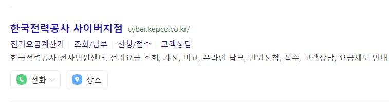 1. 다음, 네이버 등 포털에 [한전 사이버지점]을 검색하여 홈페이지에 들어간다.
