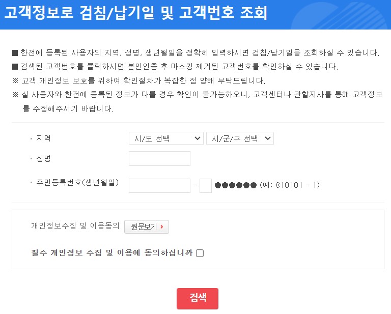 ☞ [한전 사이버지점] 홈페이지에서는 로그인 없이 고객 번호 조회가 가능합니다.